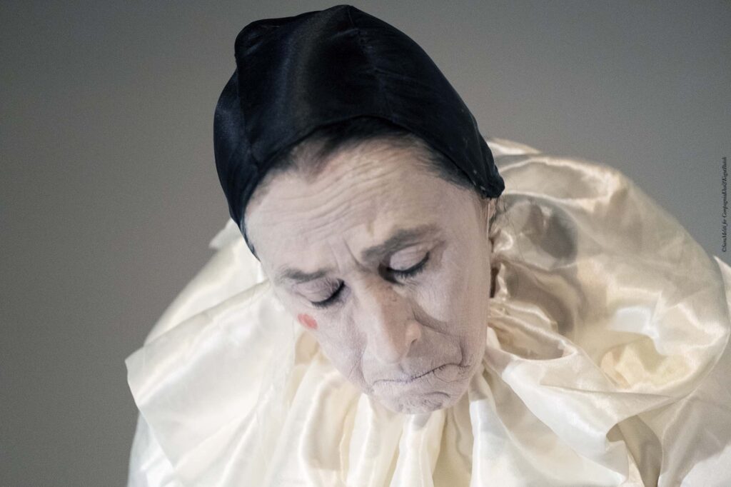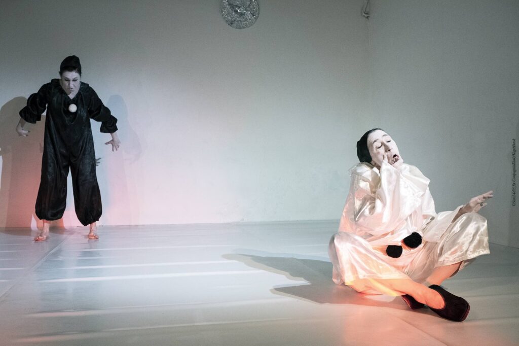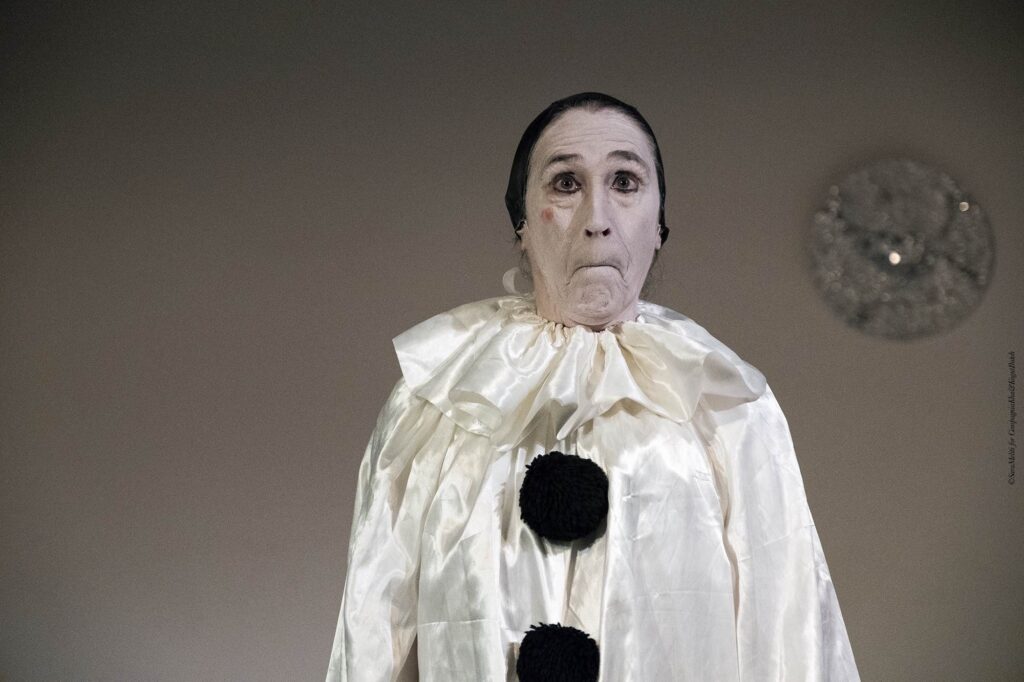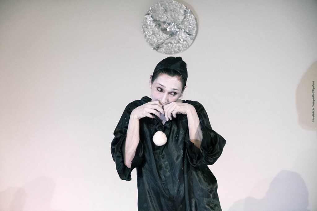 Performance ispirata al Pierrot, la famosa maschera della Commedia dell’Arte, rinomata per le sua avventure naïf e tragicomiche.