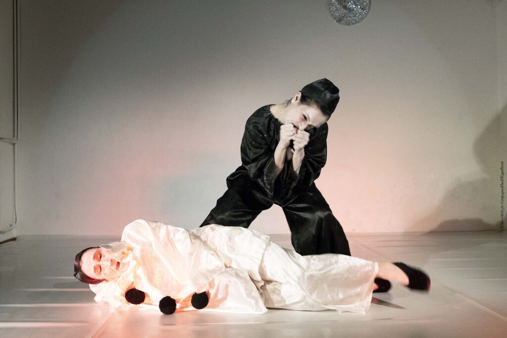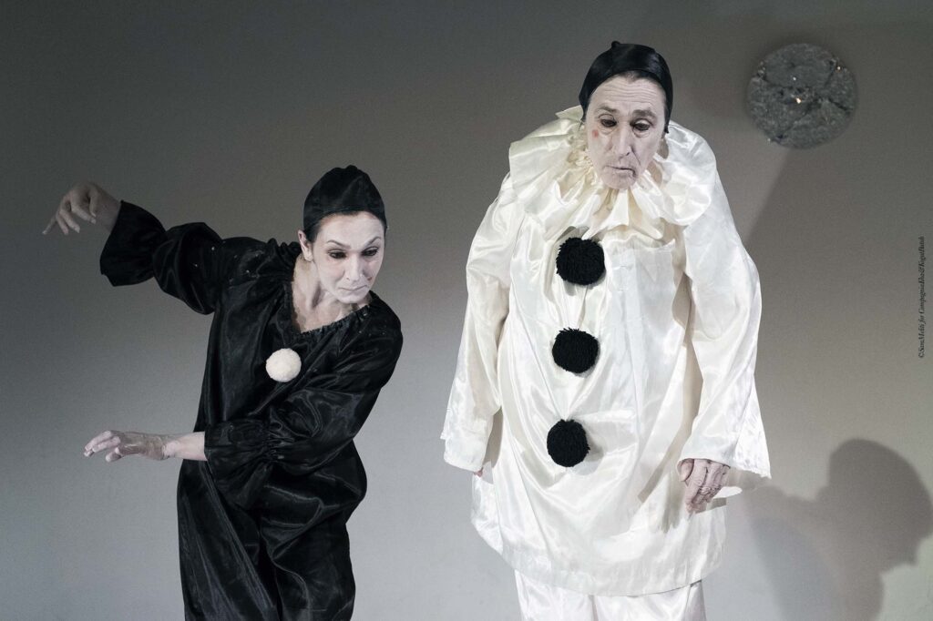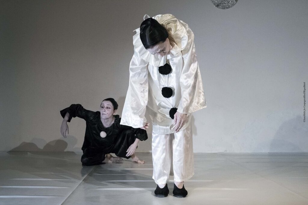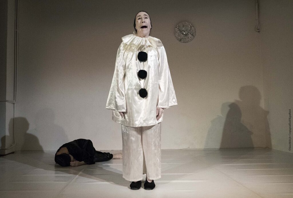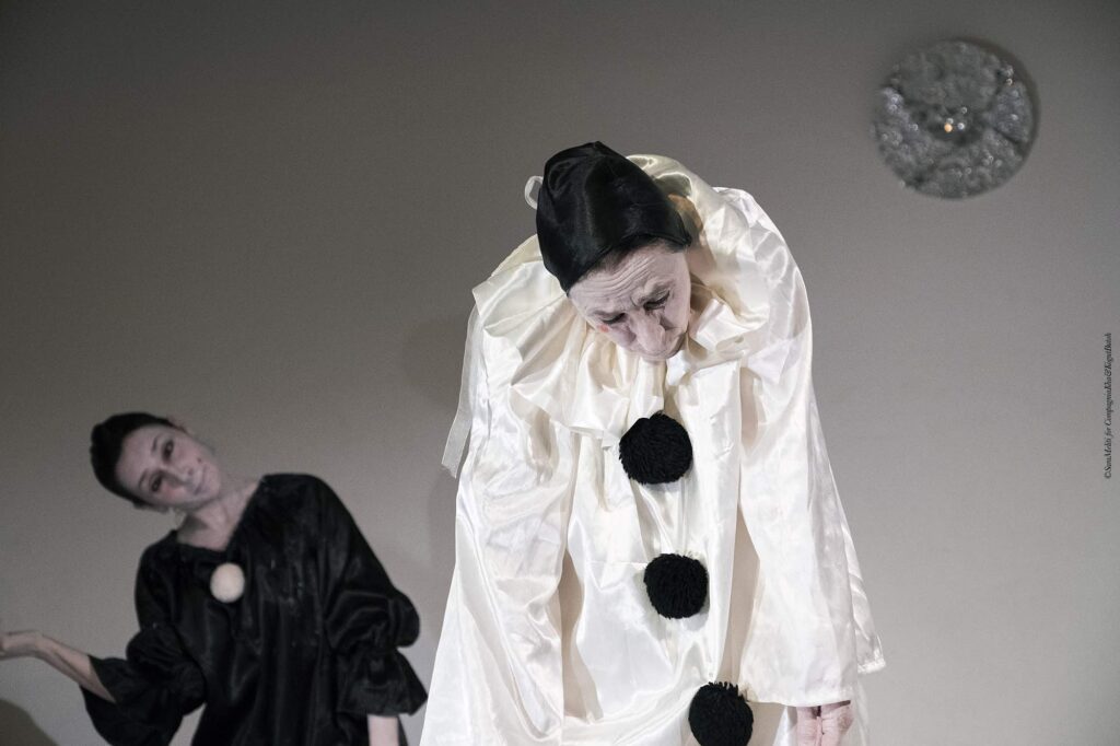 Performance ispirata al Pierrot, la famosa maschera della Commedia dell’Arte, rinomata per le sua avventure naïf e tragicomiche.