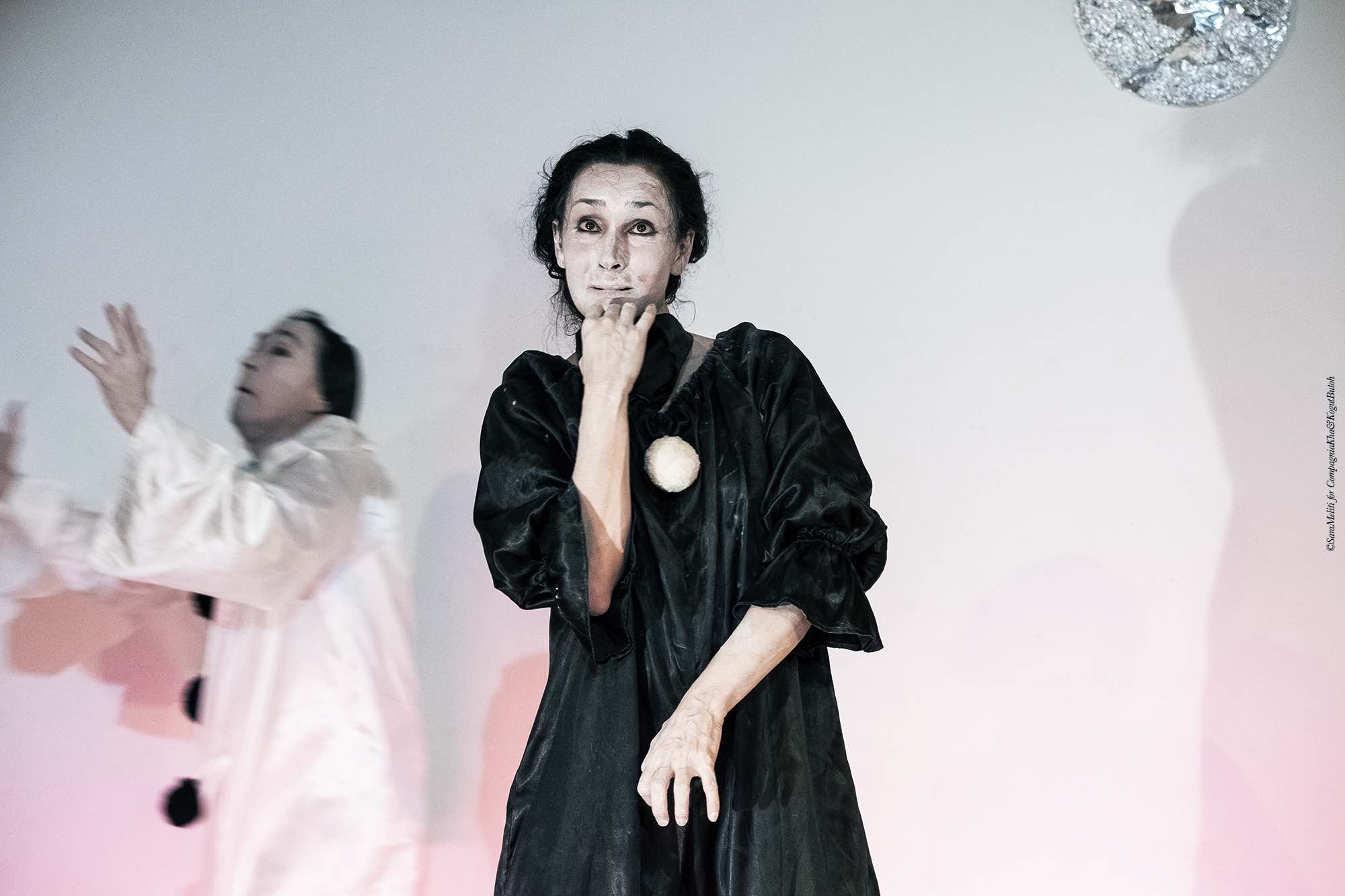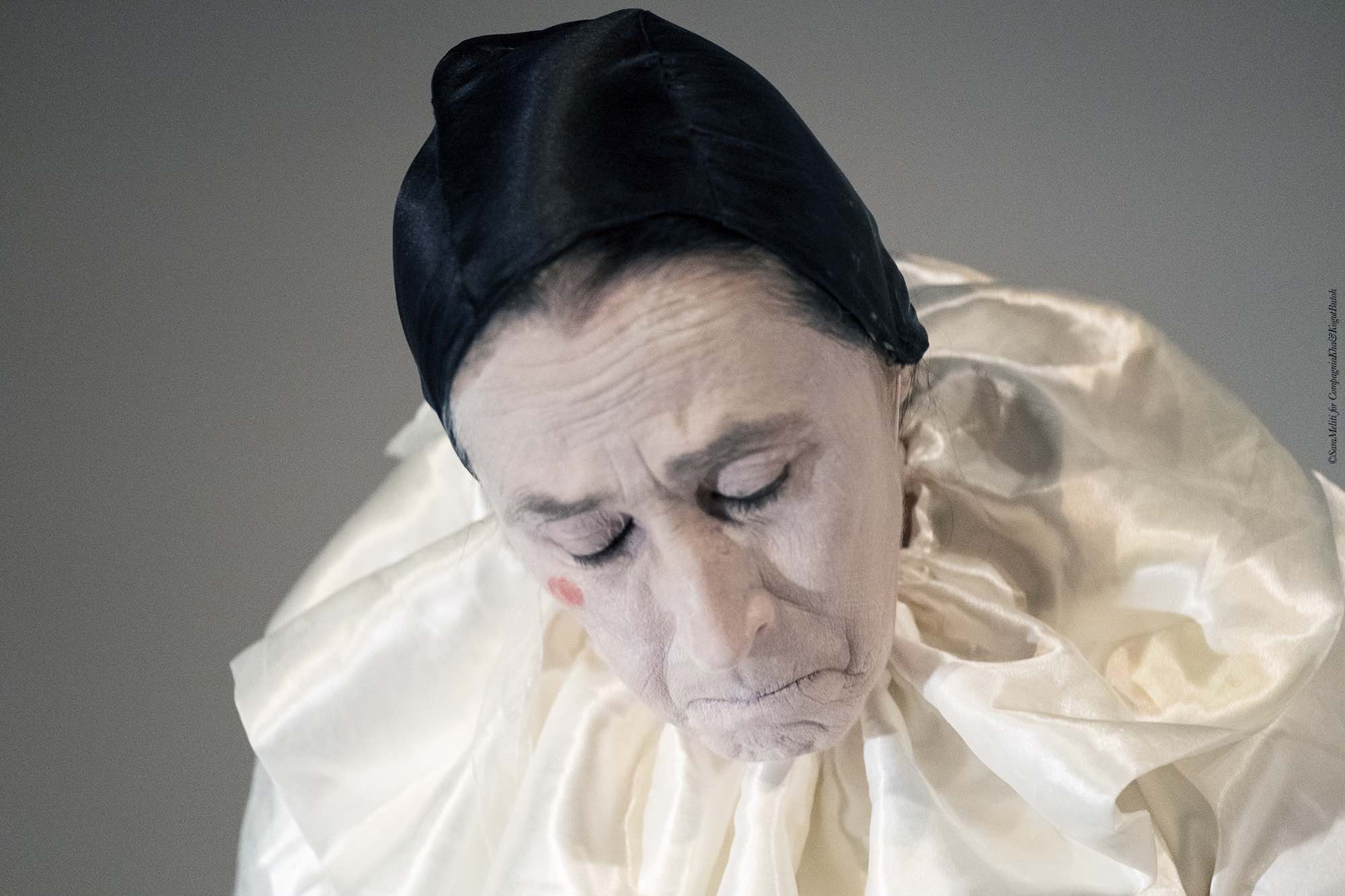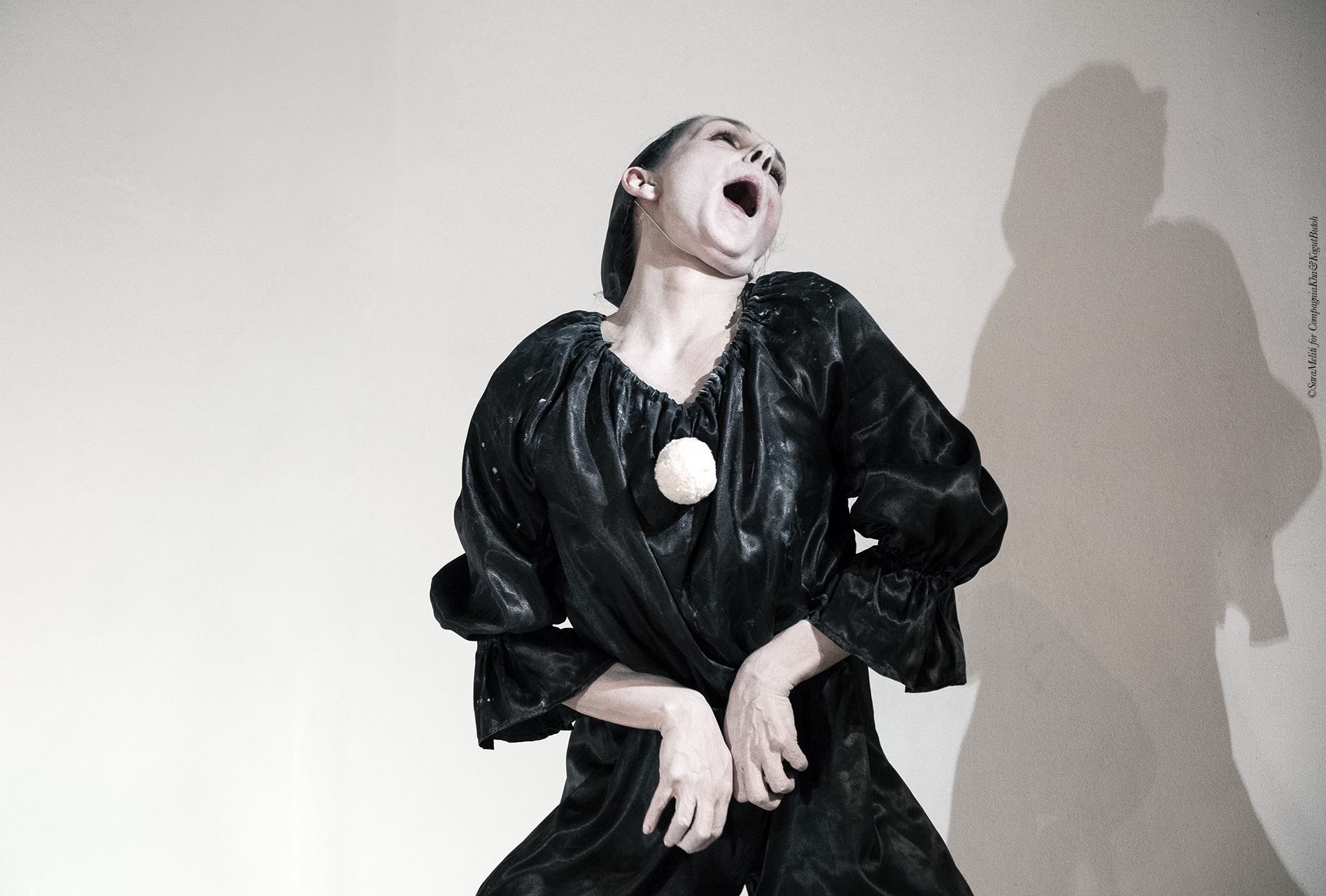 Performance ispirata al Pierrot, la famosa maschera della Commedia dell’Arte, rinomata per le sua avventure naïf e tragicomiche.