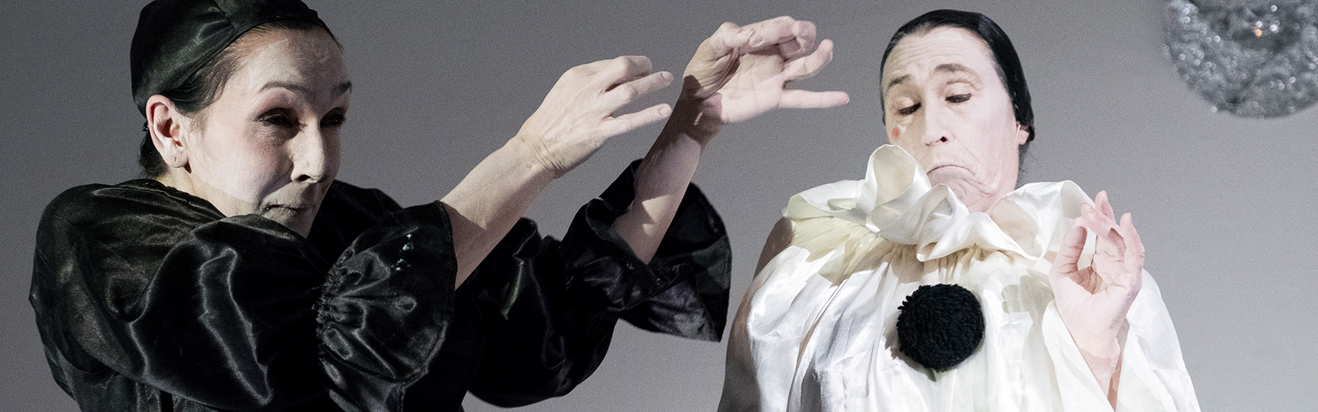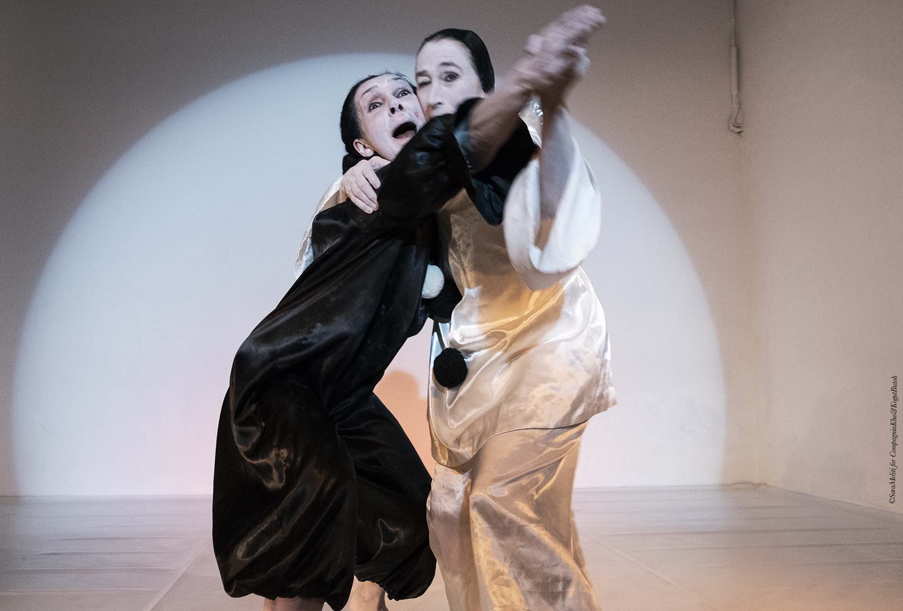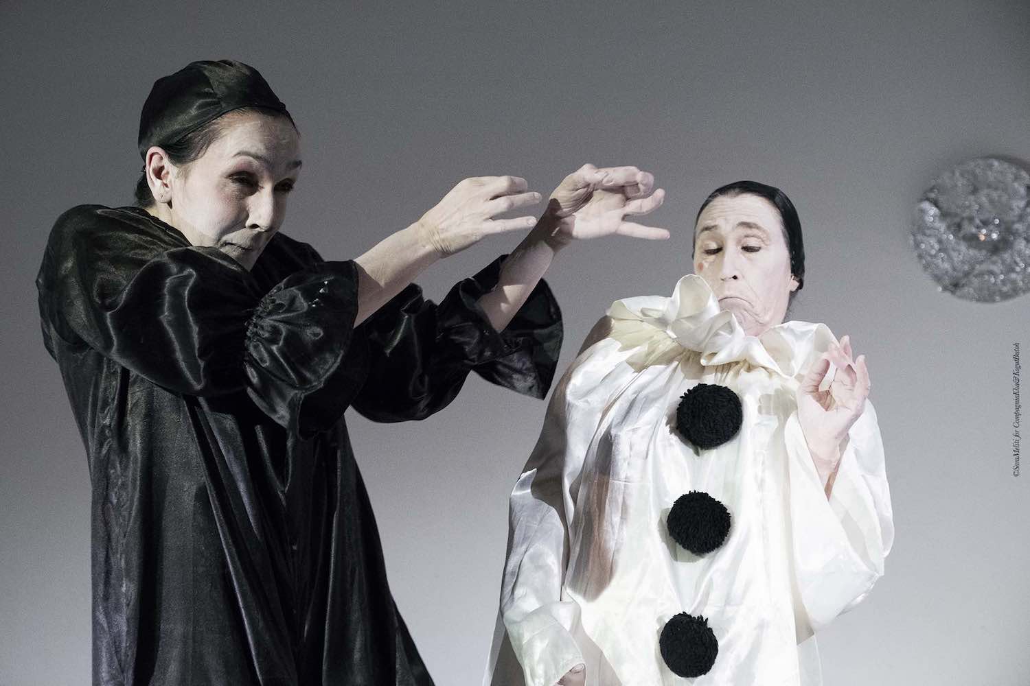 Performance ispirata al Pierrot, la famosa maschera della Commedia dell’Arte, rinomata per le sua avventure naïf e tragicomiche.