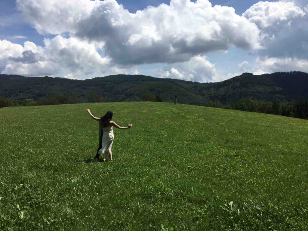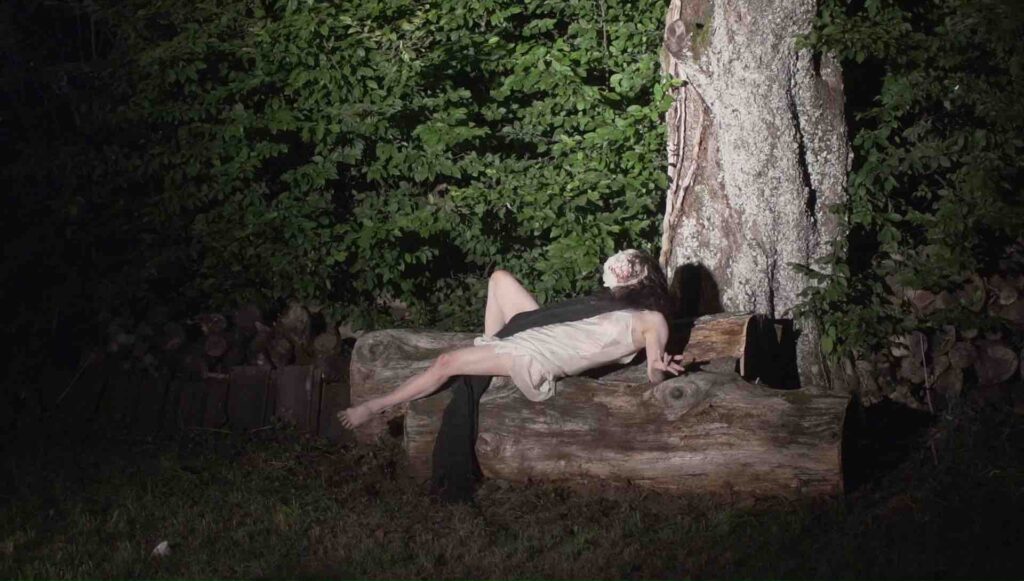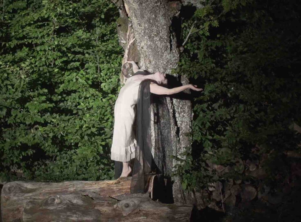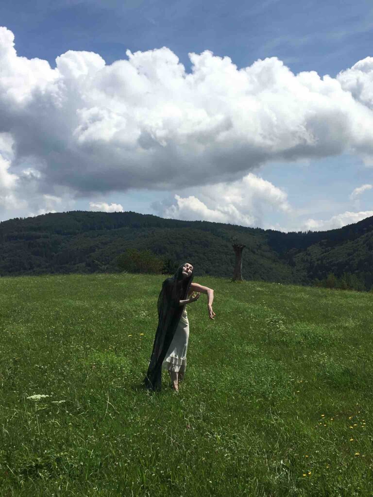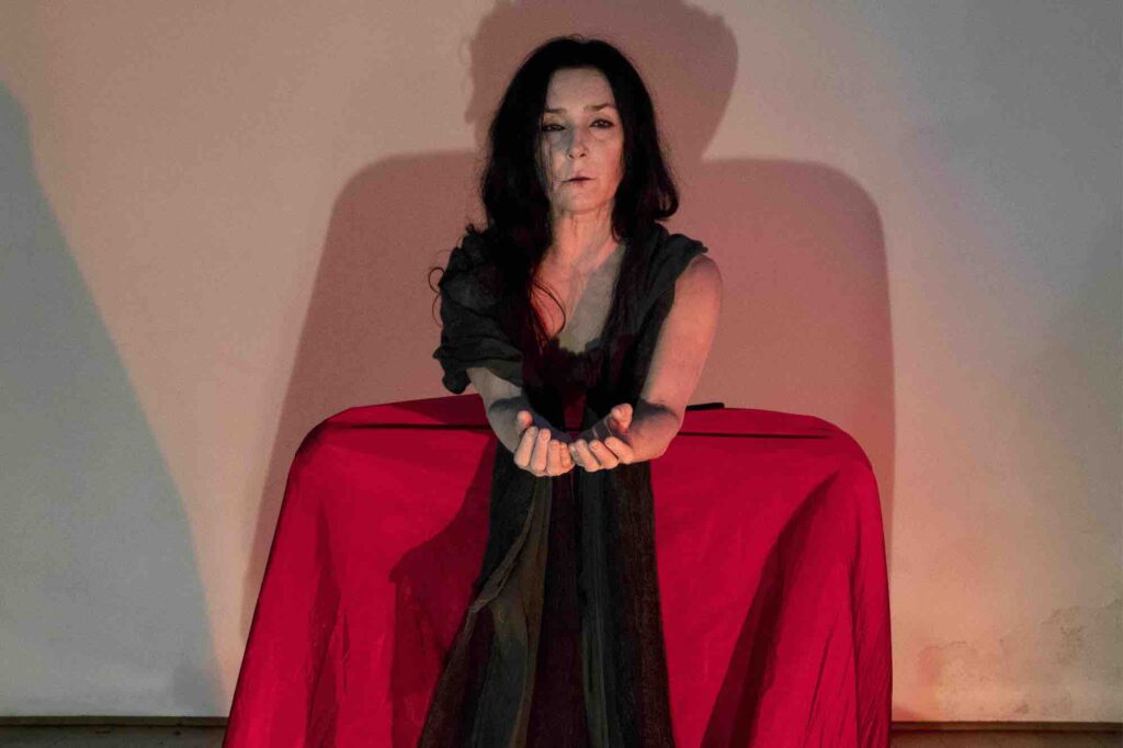 Una musica fatta di vuoti e stratificazioni sonore, che trascinano la performance nel tempo del sogno, fluttuando in un altro spazio-tempo dove gli Spiriti e gli archetipi possono manifestarsi: tra cui una donna gatto nella luce della luna, l’Amabie, una creatura magica che ha il potere di allontanare le epidemie, una vecchia mangiata dalle formiche, un fiore universale, l’antica saggezza della Terra e della vita, eterna e sempre in mutazione.