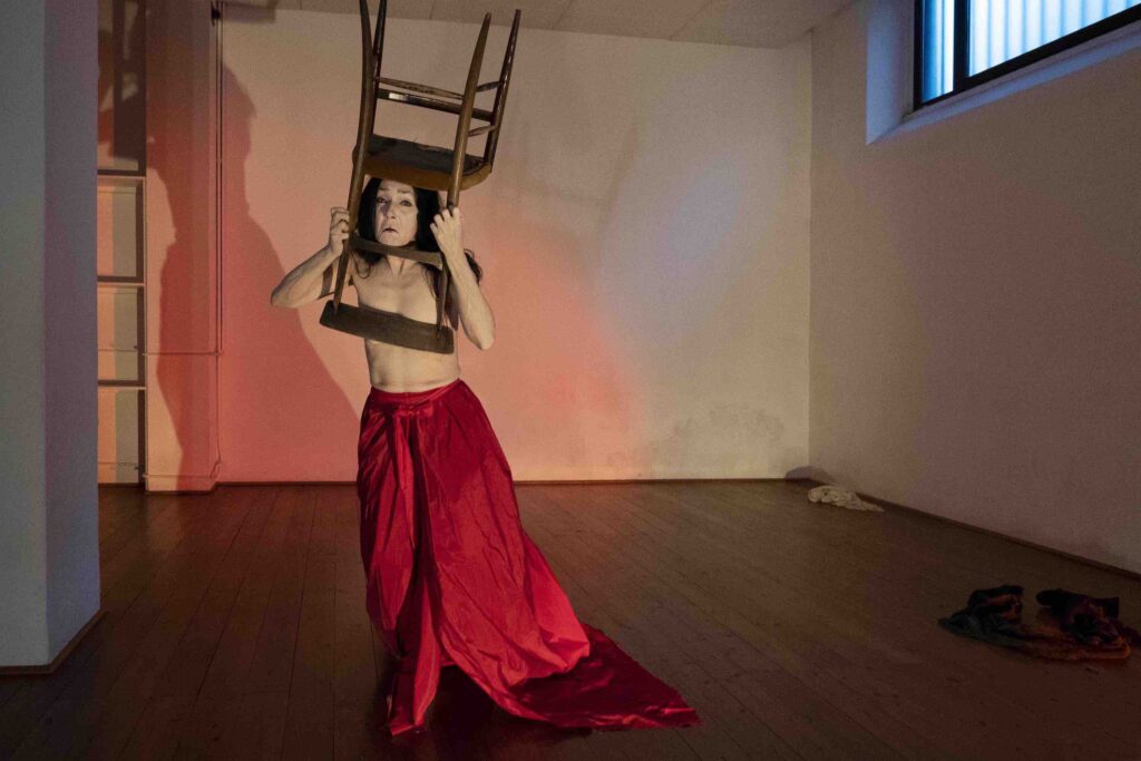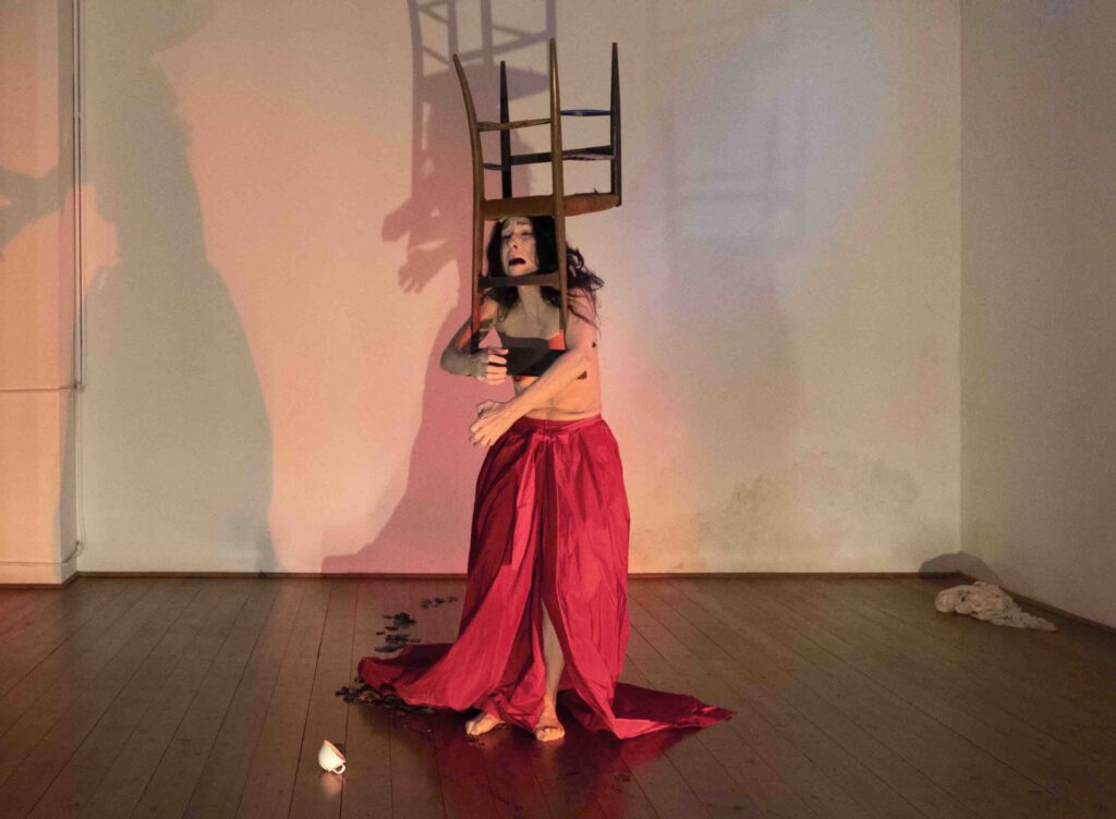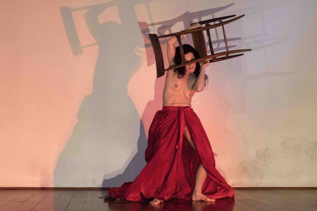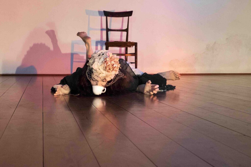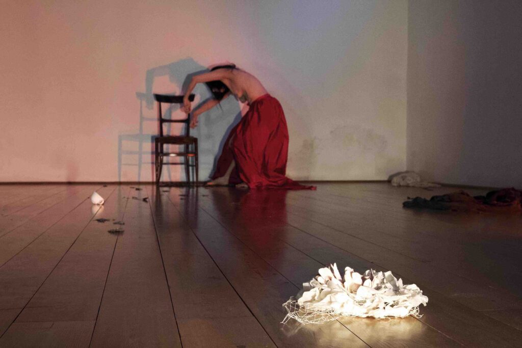 La parola giapponese Mono racchiude in sé molteplici significati: cosa, materia, persona, Spirito, Dio. Per comprendere il significato nascosto della parola bisogna abbracciare la cultura animista, che riconosce lo spirito in ogni cosa, la sua energia, la sua memoria, ma anche un’entità divina specifica. Una danza che si svuota, dove la danzatrice fluttua come uno spirito, in un luogo-casa, e si lascia attraversare dalle memorie e dalle emozioni generate dall’incontro con oggetti, lasciando poi svanire le forme nel flusso del gioco della vita.