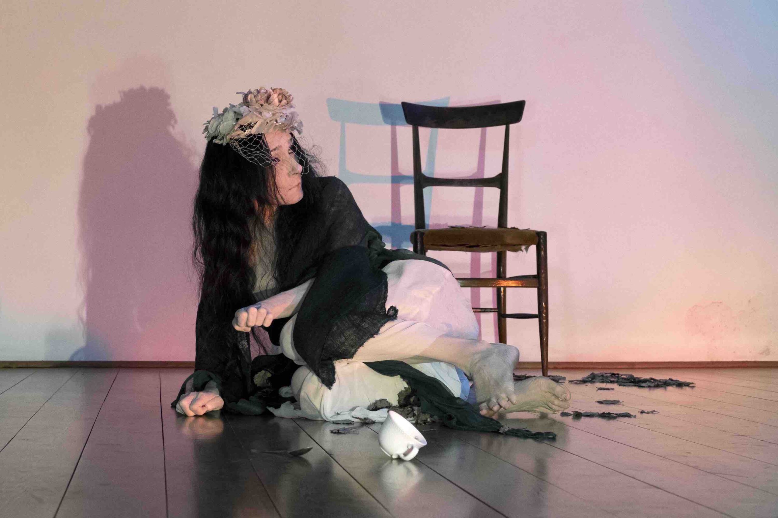 La parola giapponese Mono racchiude in sé molteplici significati: cosa, materia, persona, Spirito, Dio. Per comprendere il significato nascosto della parola bisogna abbracciare la cultura animista, che riconosce lo spirito in ogni cosa, la sua energia, la sua memoria, ma anche un’entità divina specifica. Una danza che si svuota, dove la danzatrice fluttua come uno spirito, in un luogo-casa, e si lascia attraversare dalle memorie e dalle emozioni generate dall’incontro con oggetti, lasciando poi svanire le forme nel flusso del gioco della vita.