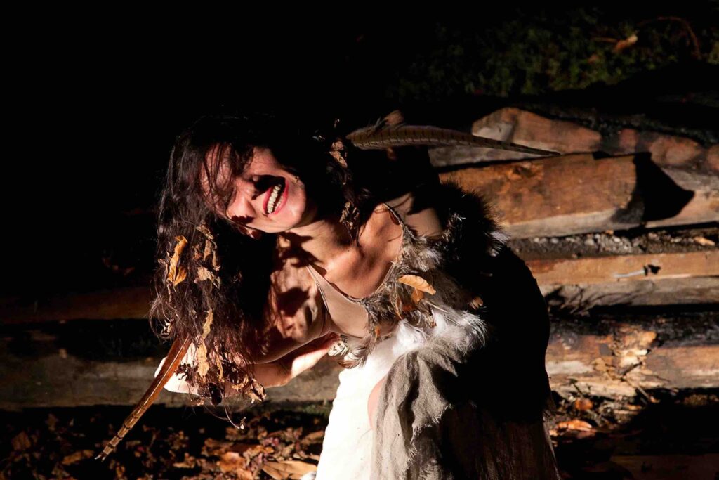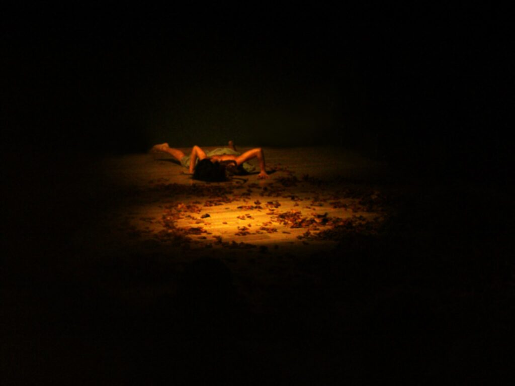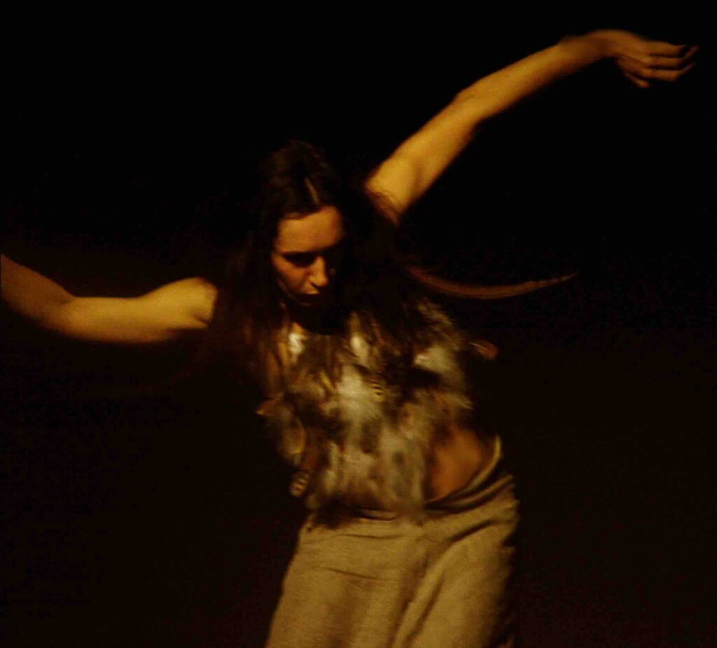 Wu la “danzatrice” è una viaggiatrice, che attraversa lo spazio e apre luoghi interiori, traccia percorsi e crea segni, solchi che risvegliano memorie antiche, archetipi che non hanno tempo. Celebra, danzando, l’unione amorosa del cielo con la terra, riceve la forza della terra, le sue profondità e la sua energia trasformatrice, che distrugge per ricreare, danza i demoni, diventa la purificazione e la fertilità dell’acqua. Come una nomade, migra: la sua dimora è il suo corpo, ripercorre strade antiche e sottili linee energetiche, tesse fibre, traccia nel vuoto. Nel suo agire Wu forma le sue mappe interiori, punti di incontro, incroci o luoghi in cui fermarsi e sostare, segna la terra per formare memoria. Tracce di Wu rimangono nel desiderio di volare e migrare in ognuno di noi.